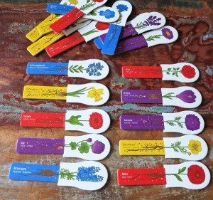 Ganz wichtig sind da natürlich die Blumenstecker. Es gibt 20 davon, nach Farben geordnet, auf denen ganz deutlich die einzelnen Pflanzen und vor allem deren Blüten abgebildet sind.