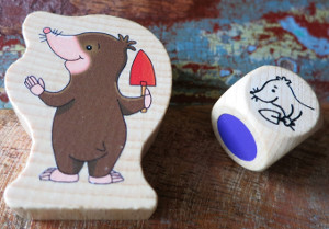 Holz und Karton. Mehr ist es hier nicht. Es gibt einen Spielplan, der in die robuste Box eingelegt wird und ebenfalls robuste Kartonstecker. Würfel und Maulwurffigur sind aus Holz.